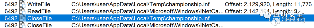這個championship.inf居然直接被刪除了,而對比原始樣本,在CloseFile前沒有這一項: