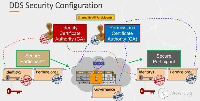 關于訪問控制,首先,Governance 文件限制 domain 域的整體訪問控制策略,如節點訪問控制(是否允許未授權節點訪問,是否允許被發現),以及 domain 內部 topic 訪問控制(是否允許被發現、是否允許未授權讀寫)等。其次,每個節點的 Permission 限制自己的訪問權限,如是否允許對某 topic 讀寫。