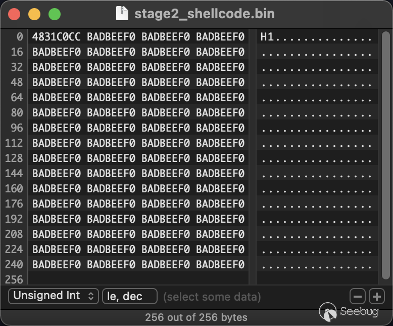 stage2_shellcode.bin: 第二階段shellcode, 由于沒有可用的沙盒逃逸利用, 這里的stage2_shellcode只是做了int3斷點以及一些無用數據 - 帶