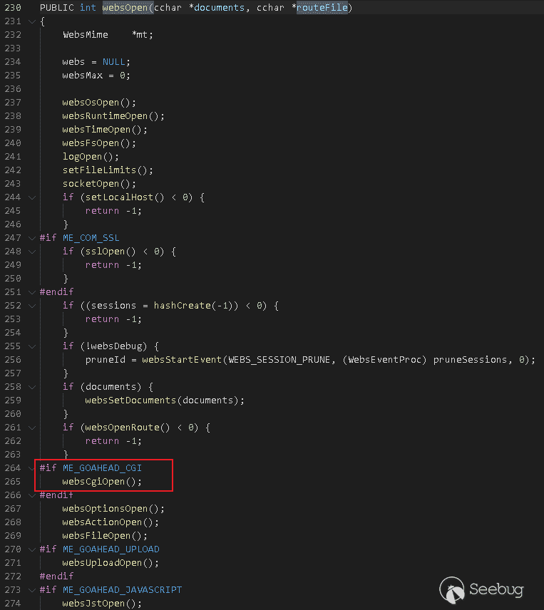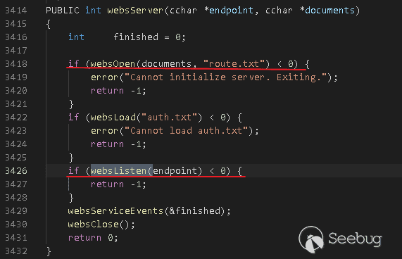 GoAhead進程啟動后,會調用http.c#websServer函數完成配置初始化處理: