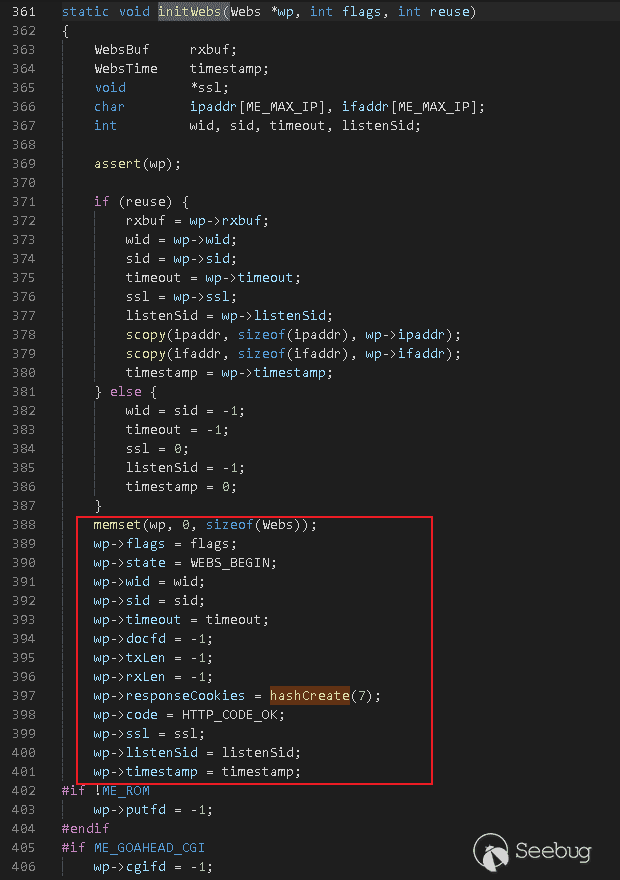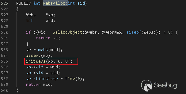 initWebs函數完成對Webs結構體初始化的工作: