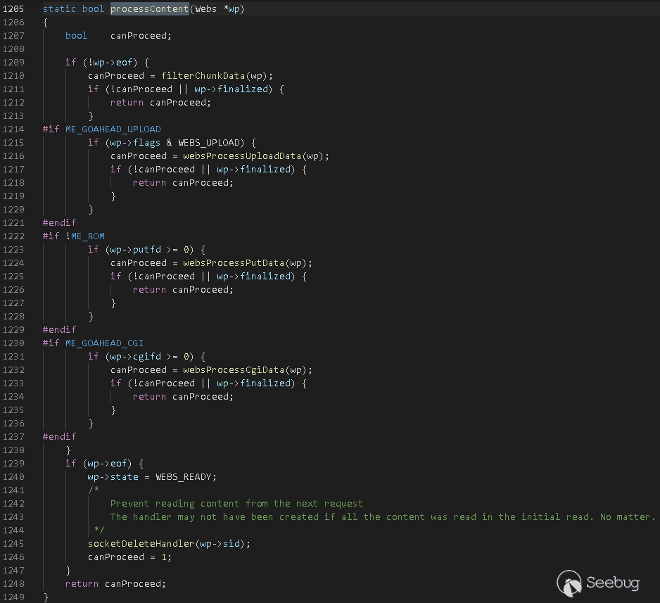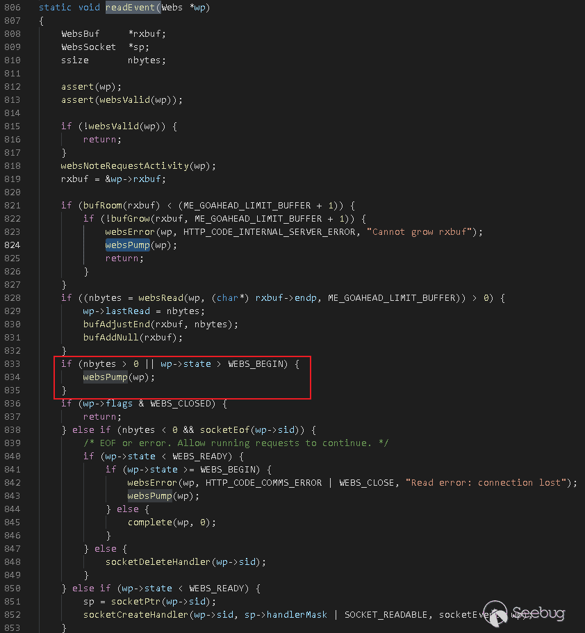對于每一個HTTP請求,GoAhead以事件形式通過readEvent函數進行處理: