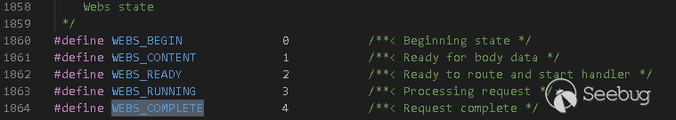 下面我們簡要分析一下GoAhead對一次HTTP請求進行處理的流程。GoAhead將HTTP請求分為4個狀態: