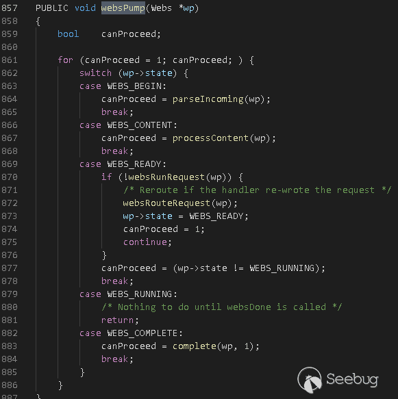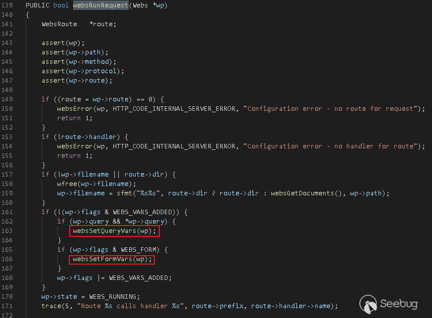 websPump將調用websRunRequest進行處理: