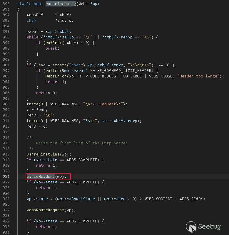 在Accept階段(即WEBS_BEGIN),調用函數parseIncoming: