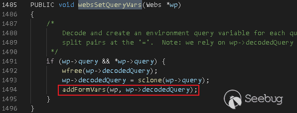在這里有兩個函數websSetQueryVars和websSetFormVars需要注意:
