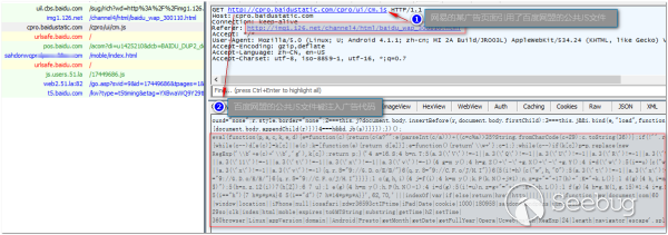 [19] 抓包分析顯示百度網盟的公共JS文件被注入廣告代碼