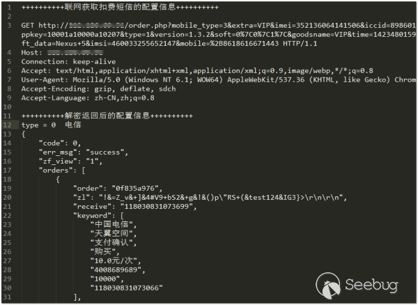 [23] 某“偽色播”病毒APP通過短信定制業務進行扣費的接口數據包