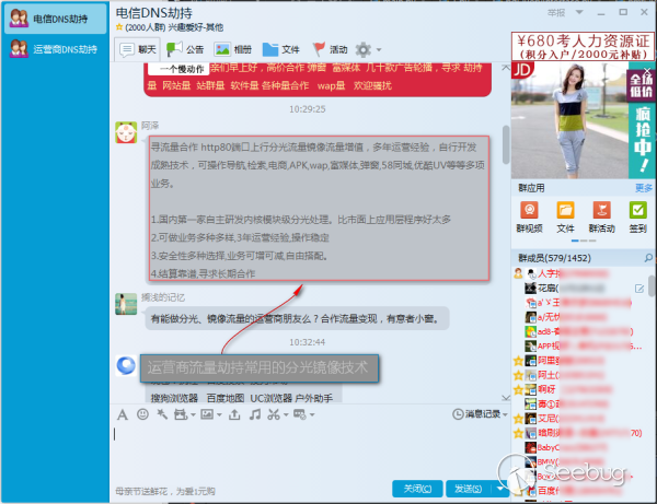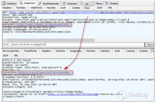 這個案例劫持代碼中的域名“abc.ss229.com”歸屬于推廣廣告聯盟,在安全論壇和微博已有多次用戶反饋,其官網號稱日均PV達到2.5億。其實運營商劫持流量的買賣其實已是圈內半公開的秘密,結合對用戶上網習慣的分析,可以實現對不同地區、不同群體用戶的精準定制化廣告推送,感興趣的讀者可以自行搜索相關的QQ群。