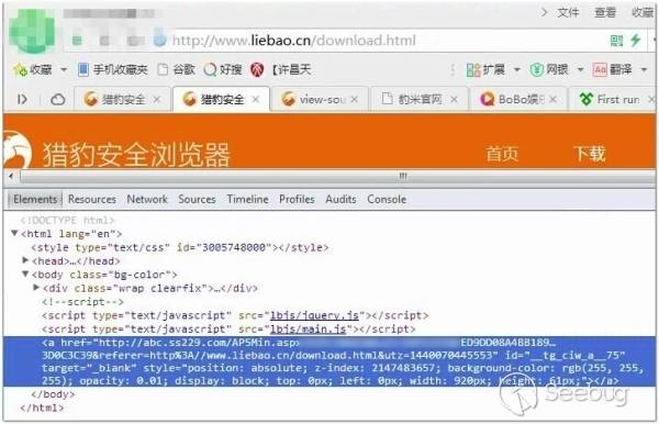 在我們日常的安全運營過程中也經常接到疑似運營商劫持的用戶反饋,下面講述一個非常典型的http劫持跳轉案例,用戶反饋打開獵豹瀏覽器首頁點擊下載就會彈出廣告頁面,經過我們的檢測發現用戶的網絡被運營商劫持,打開網頁的數據包中被注入了廣告劫持代碼。類似的案例還有很多,除了明面上的廣告彈窗,還有后臺靜默的流量暗刷。對于普通用戶來說,可能只有運營商客服投訴或工信部投訴才能讓這些劫持行為稍有收斂。