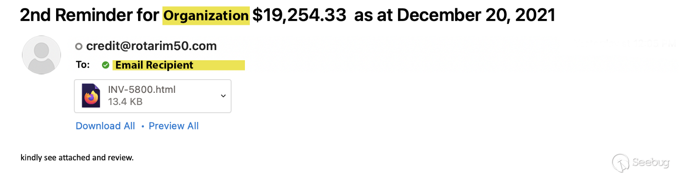 域 gemlacksresults[.]net 和 rotarim50[.]com 被用作發送域。這兩個發件人域名都通過 sav.com 網站注冊,并在注冊后不到30天內被使用。