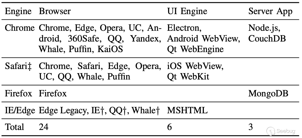 3. 單獨的規范: 同樣重要的是,要就其安全問題提供客觀的觀點;每個瀏覽器在做出決策時都有自己的規范和要求(例如,發布截止日期),專注于基本問題是至關重要的。為了解決這個問題,我們提供了一個統一的架構,可以在概念上比較和對比每個瀏覽器的設計,而不會影響它們的實現細節。