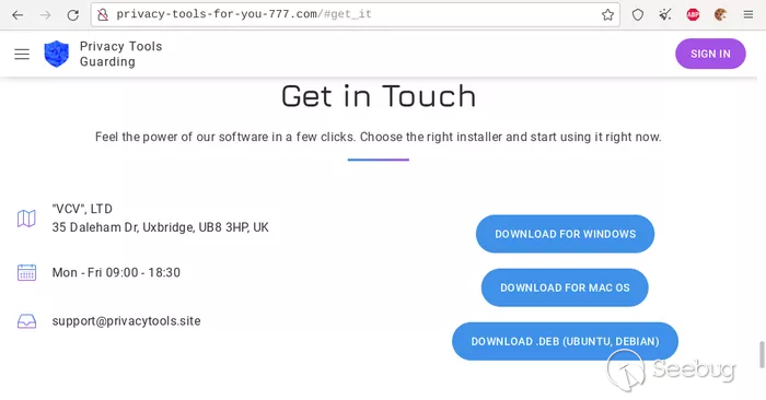 很明顯,運行“隱私工具”域名的運營商嚴重依賴 PrivateLoader 提供 Smokeloader。對活動分發網址的檢查顯示,這些域名擁有一個聲稱提供“隱私工具”的網站。這個網站很可能是在仿冒真正的PrivacyTools[.]io網站,而這個網站是由提倡數據隱私的志愿者運營的。