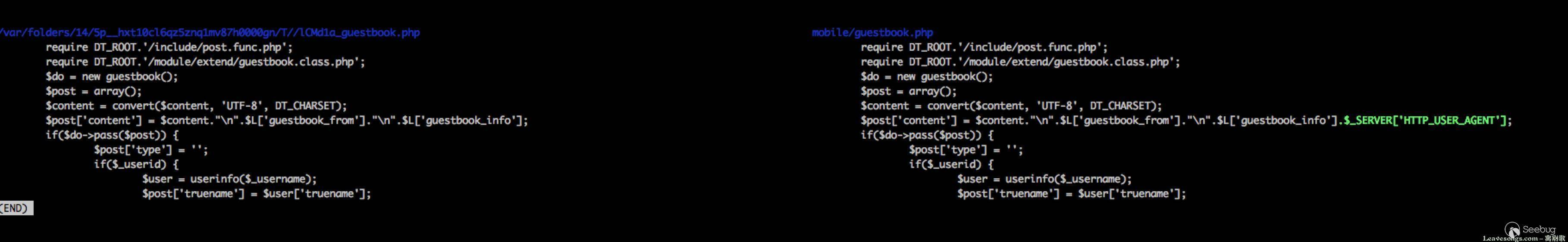 mobile/guestbook.php 中將$_SERVER['HTTP_USER_AGENT']刪掉了。分析一下,這里是手機端的留言板,destoon將用戶的User-Agent放入了留言內容變量$post[content]中。