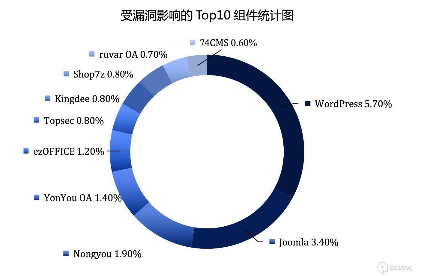 另外可以從下圖看出,Top10 組件全部為信息管理系統,可見像WordPress、Joomla這些管理系統依然是全球廣大白帽子關注的重點Web應用。