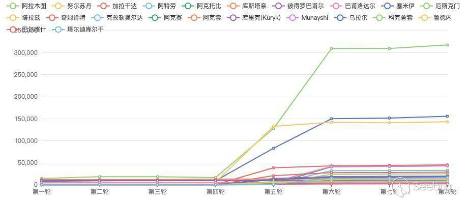 - 以哈薩克斯坦前首都阿拉木圖為代表,在第四輪到第六輪掃描期間網絡在持續恢復。下圖中藍色三角表示。