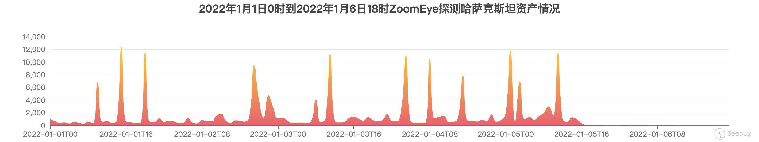 在意識到哈薩克斯坦切斷網絡這一事件爆發后,ZoomEye網絡空間搜索引擎在2022年1月6日12時、2022年1月7日15時、2022年1月7日20時、2022年1月8日9時、2022年1月9日11時、2022年1月11日9時、2022年1月12日11時、2022年1月14日18時進行了多輪探測。