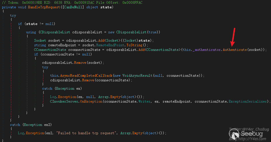 Veeam.Backup.ServiceLib.CInvokerServer.HandleTcpRequest(object),在這個函數中有鑒權處理