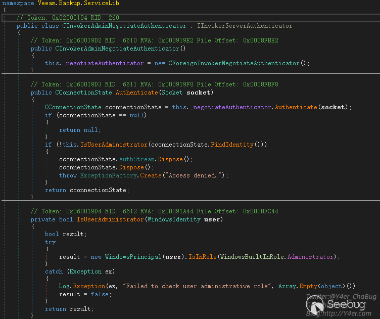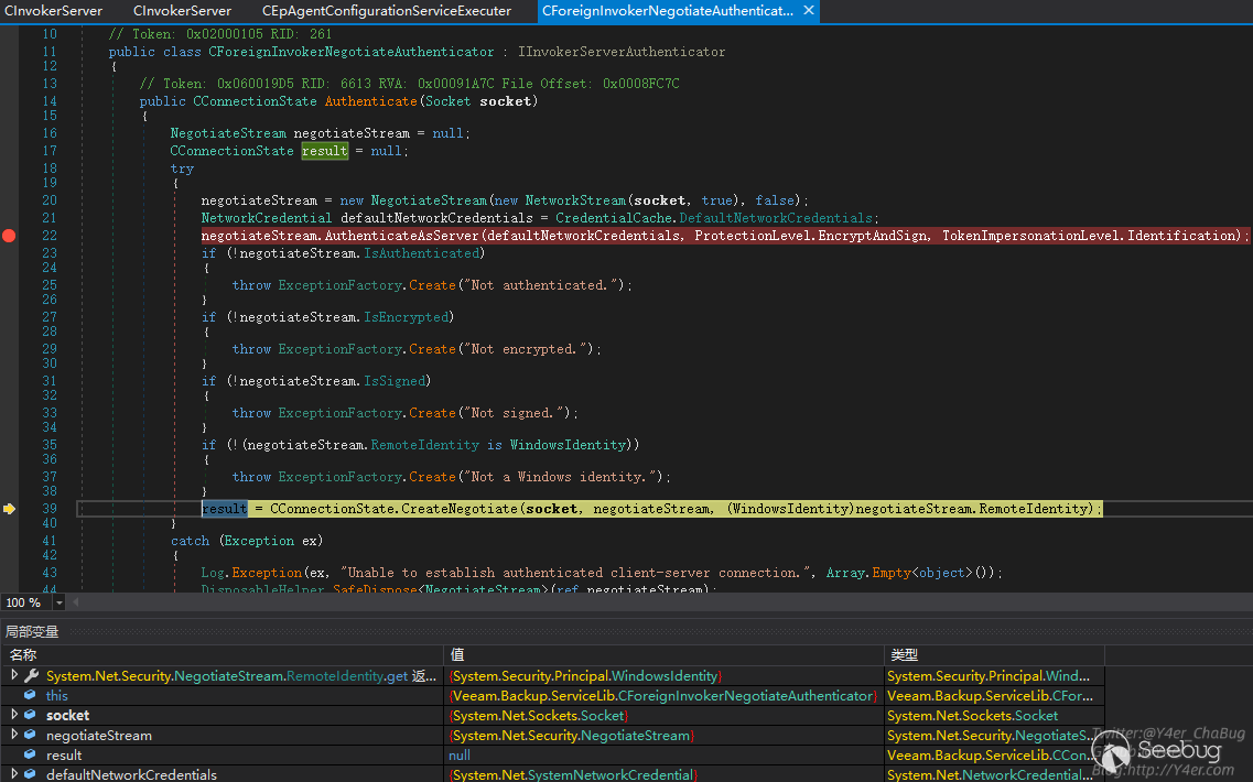 跟入 Veeam.Backup.ServiceLib.CForeignInvokerNegotiateAuthenticator.Authenticate(Socket)