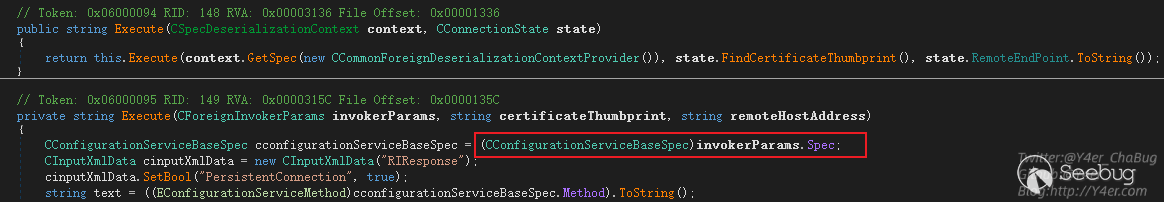 case FIScope標簽之后會判斷不同分支,返回不同的實例,而在Veeam.Backup.EpAgent.ConfigurationService.CEpAgentConfigurationServiceExecuter.Execute(CForeignInvokerParams, string, string)中我們需要的是CConfigurationServiceBaseSpec實例,因為這個地方進行了強制類型轉換