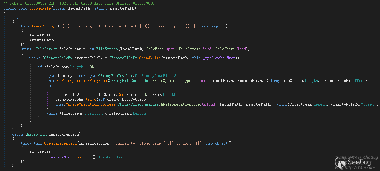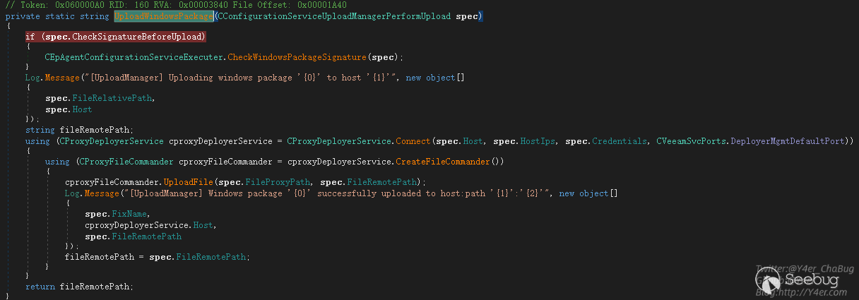 在Veeam.Backup.EpAgent.ConfigurationService.CEpAgentConfigurationServiceExecuter.Execute(CSpecDeserializationContext, CConnectionState)中可以很敏感的看到upload相關的東西