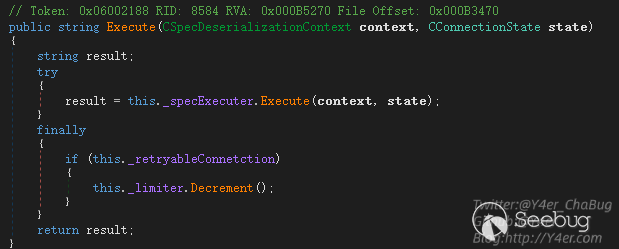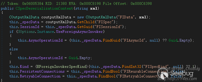在上文分析中我們知道,需要讓程序的Executer設置為CInvokerServerSyncExecuter實例。而在GetOrCreateExecuter取Executer實例時是根據CForeignInvokerParams.GetContext(text)的值來決定的。上文追溯到了這里CSpecDeserializationContext的構造函數