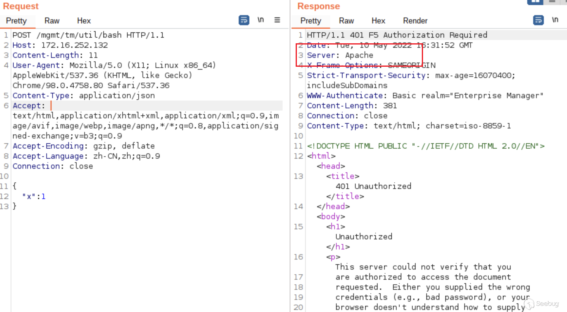 根據官方的描述和推特上的討論,我們一開始是認為這個洞是由CVE-2021-22986的SSRF帶出cookie的bypass。因為一般的請求走私是CL-CL,CL-TE,TE-CL,TE-TE,但因為BIG-IP使用的apache不支持 Transfer-Encoding,因此我們猜測走私的原因放到了Content-Length上走私請求到一個未授權的接口獲取SSRF。