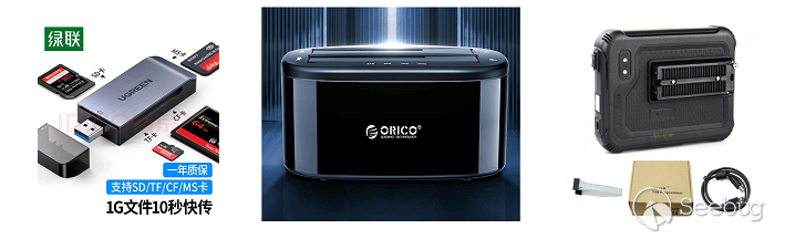 這種類型的固件存儲方式,通常需要購買相應的讀取設備來完成固件提取,例如多功能讀卡器、硬盤底座以及iot小型設備研究中常見flash的編程器等,如下圖。