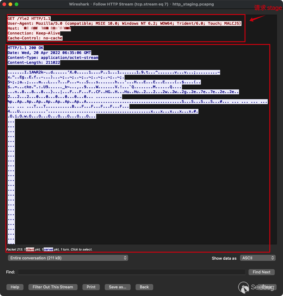 # http-beacon-staging,向c2服務器發起get請求,下載大小約210kb的stager,請求地址符合checksum8規則