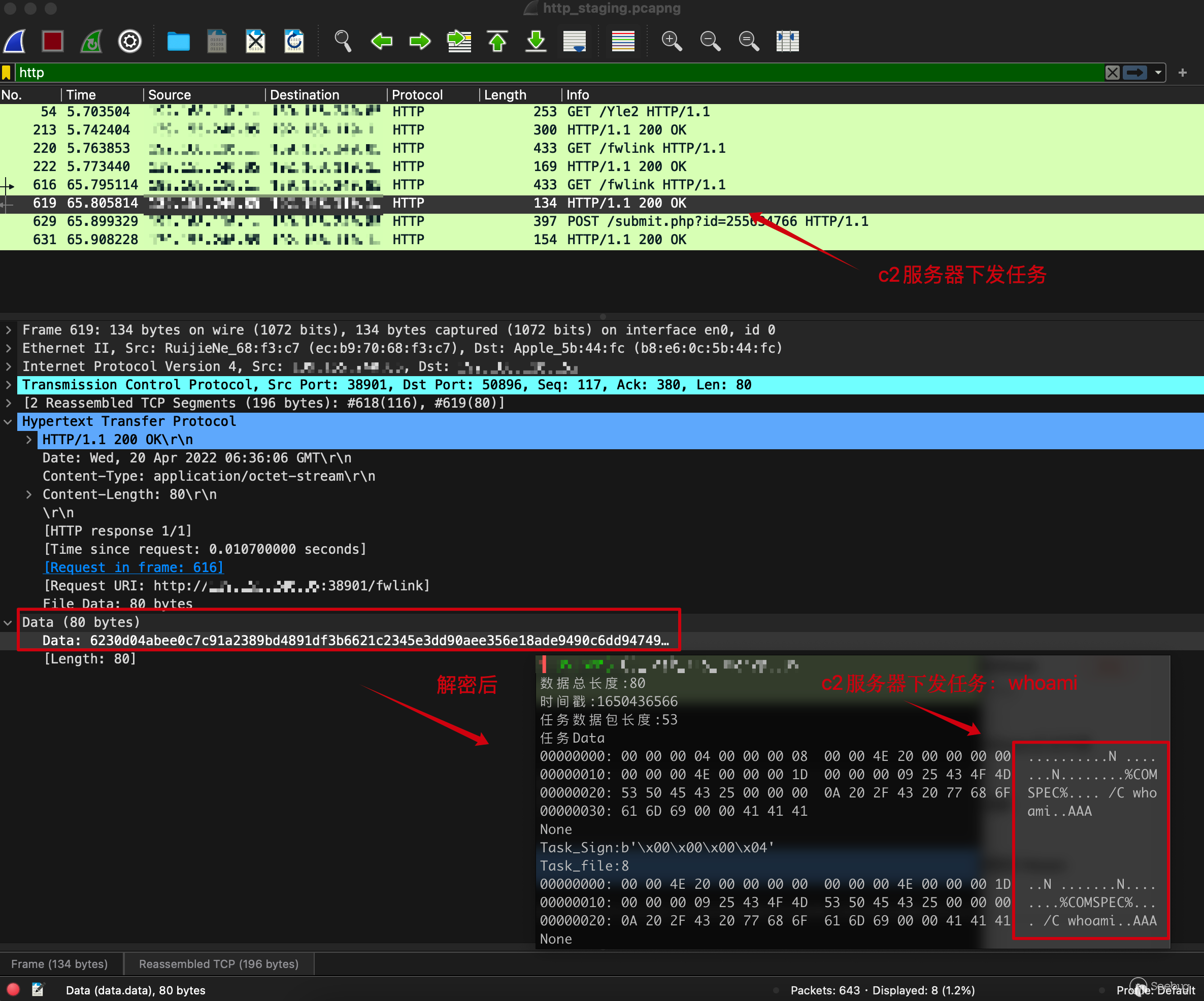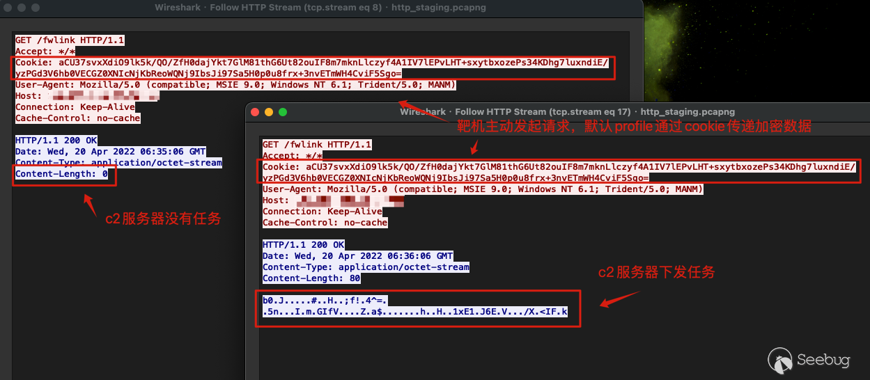 c2服務器如果有任務下發,則放入http心跳請求返回包中。