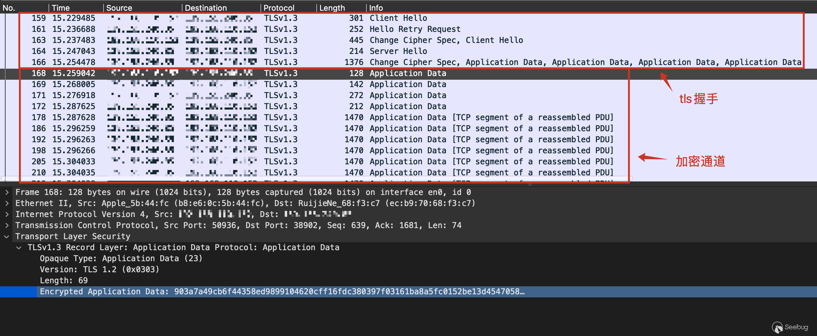 https-beacon通信中,默認使用空證書建立加密通道,流量中可以看見這一過程。