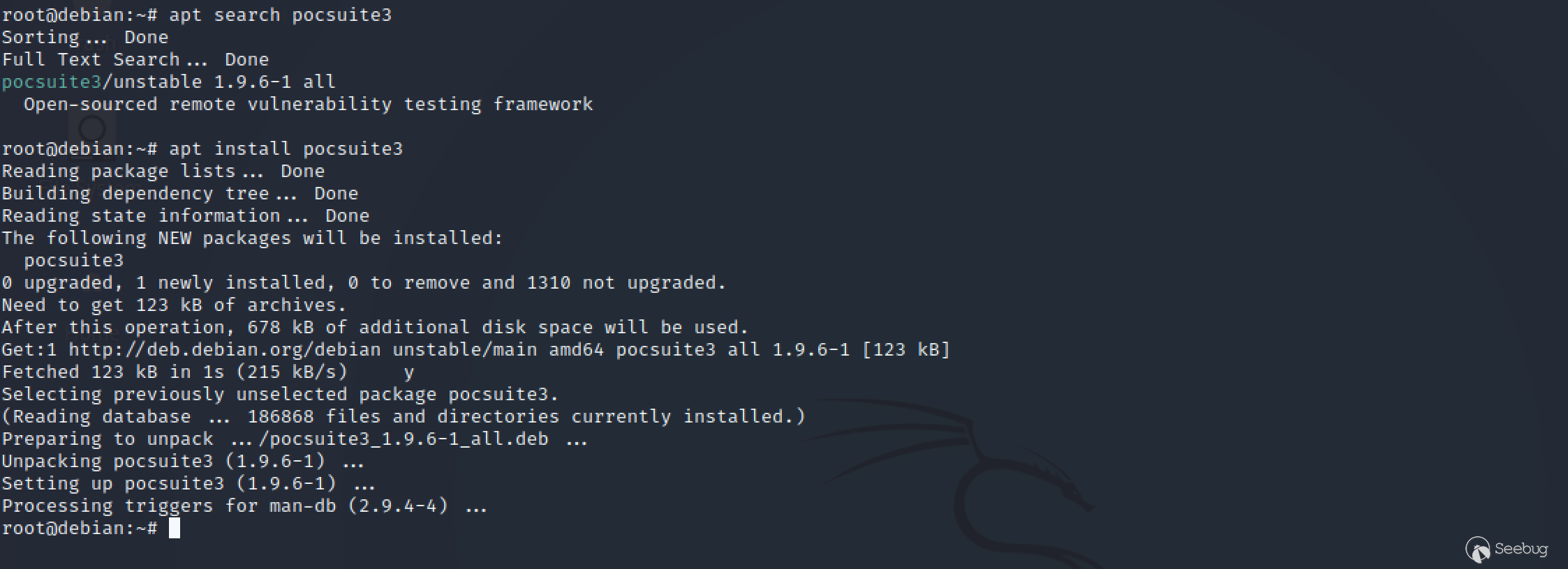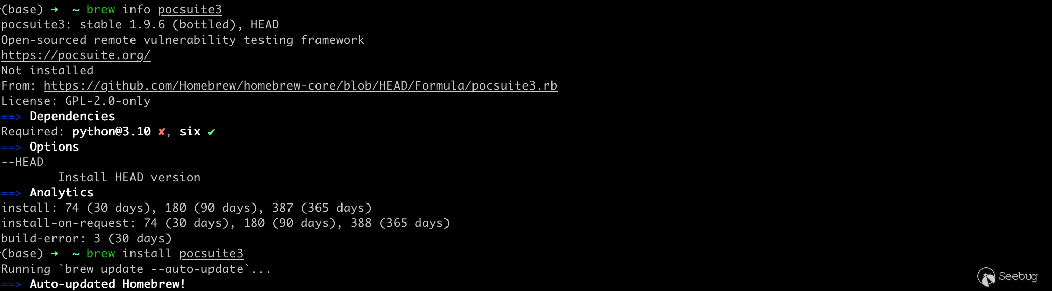 2021 年 11月,Pocsuite3 通過了 Debian 官方的代碼及合規檢查,正式加入 Debian、Ubuntu、Kali 等 Linux 發行版的軟件倉庫,可以通過 apt 命令一鍵獲取。此外,Pocsuite3 也已經推送到 Python PyPi、MacOS 的 Homebrew 倉庫、Archlinux 的 Aur 倉庫、Dockerhub。