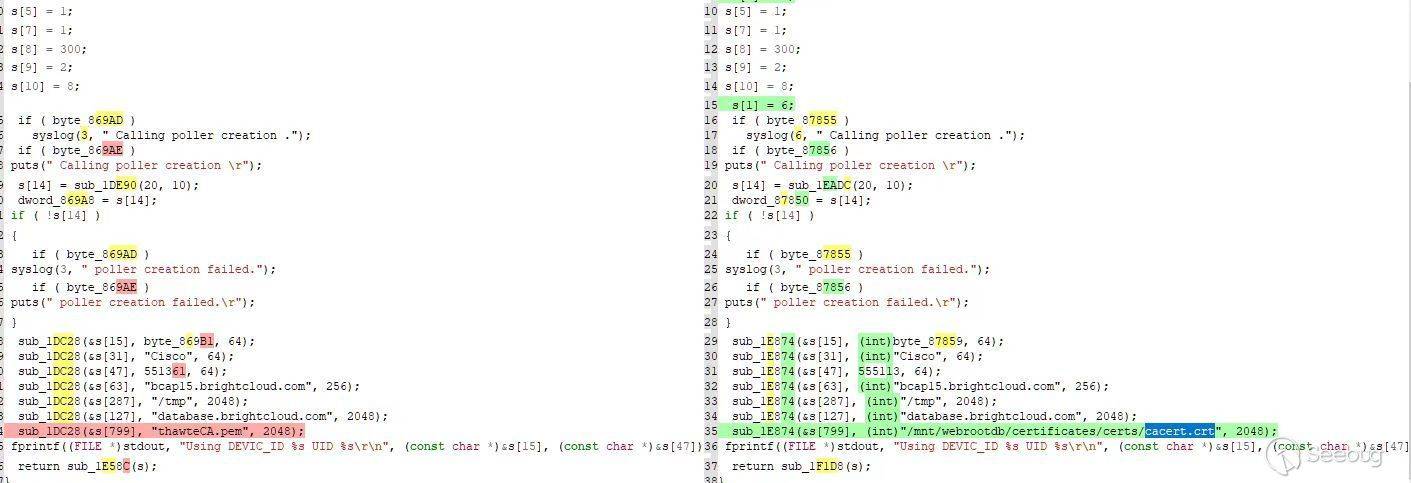 第二種是想辦法做DNS劫持,把bcap.brightcloud.com ,databse.brightcloud.com這兩域名和惡意的服務ip綁定,這樣所有發送給這兩個服務器的請求都可以被攻擊者截獲。