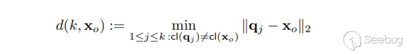 N張原始圖像上的平均值給出了攻擊效率的特征,揭示了其找到接近原始圖像的對抗樣本的能力,具體的表達式為: