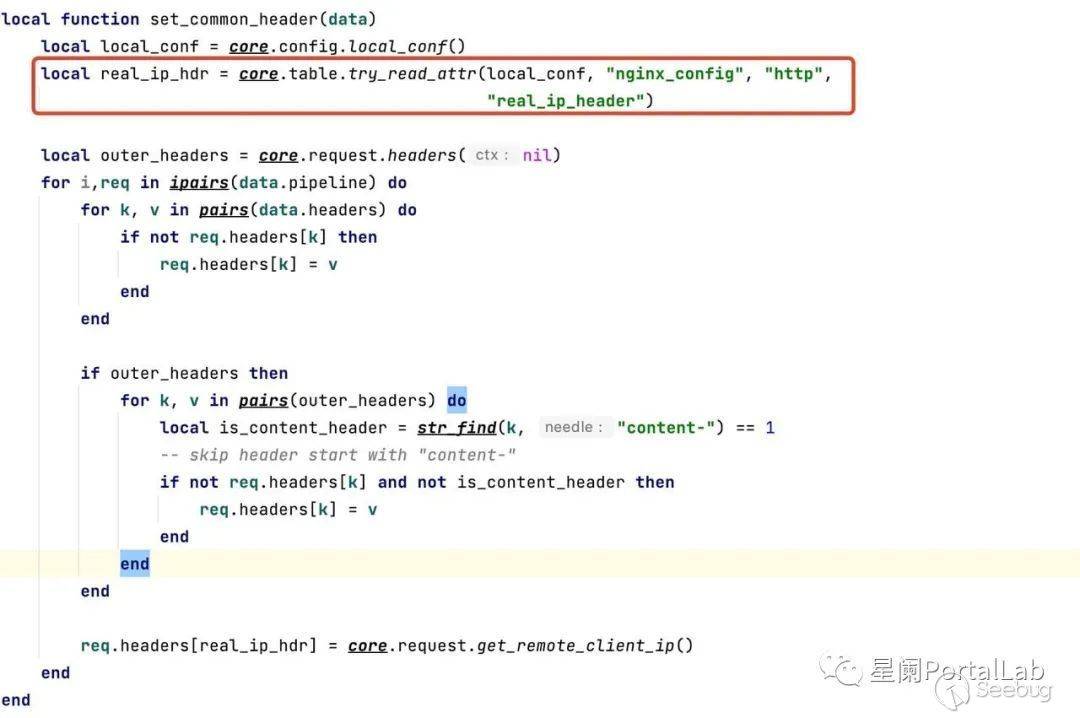 查看代碼,real_ip_hdr 為調用 try_read_attr()函數獲取到的返回值。通過遍歷表結構、獲取到 real_ip_header 的值然后再賦值給real_ip_hdr 。