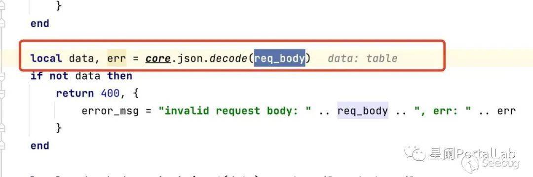 函數參數為data是我們傳入的請求體經過json.decode()后的數據、類型為"table"。