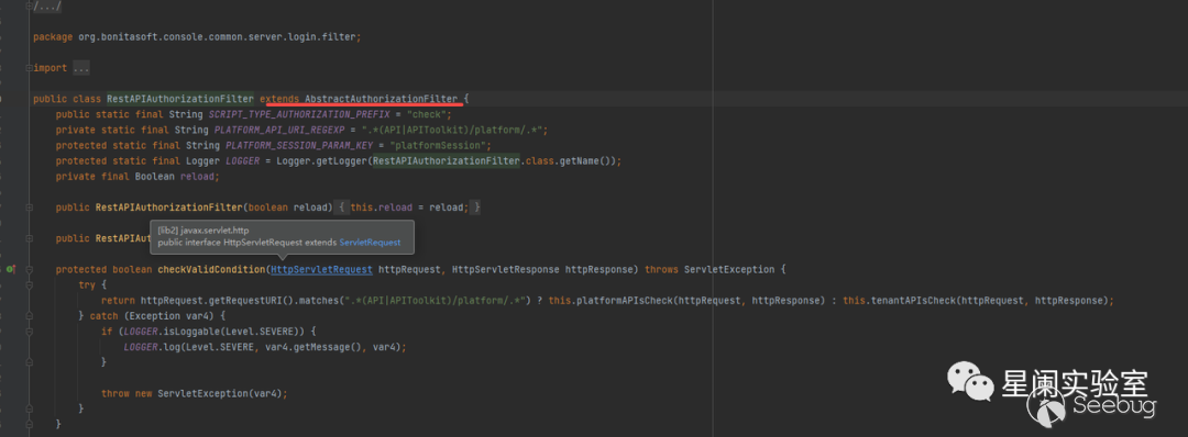 定位到org.bonitasoft.console.common.server.login.filter.AbstractAuthorizationFilter#doFilter函數。