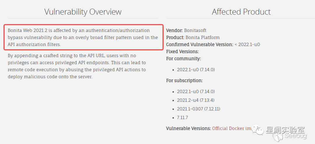在Bonitasoft Authorization漏洞版本,由于 API 授權過濾器中配置問題,通過精心構造的的字符串附加到 API URL,能夠繞過權限認證。擁有普通用戶權限的攻擊者在繞過權限認證后,將惡意代碼部署到服務器上,進行遠程代碼執行。
