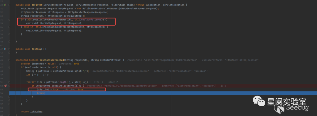 而sessionIsNotNeeded 函數檢查匹配 URL 中的是否包含excludePatterns