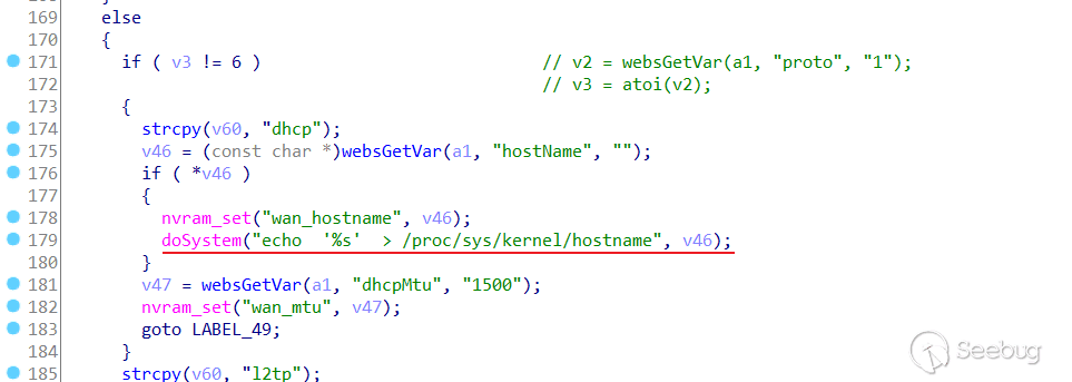 但是想要執行到doSystem函數,需要繞過一些判斷語句,proto不能為0,3,4,6,hostName不能為空。