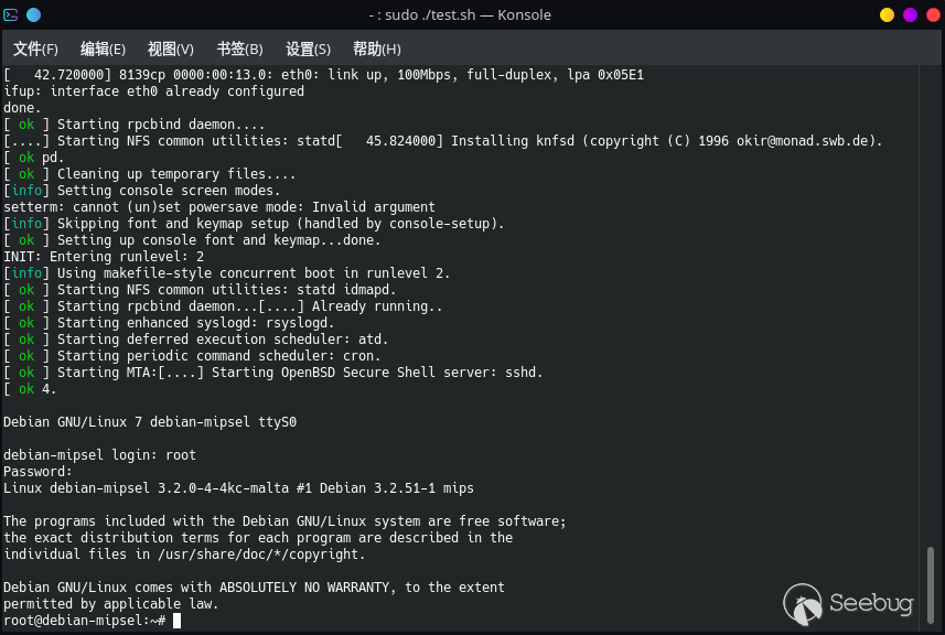 最后會讓登陸和輸入密碼,都寫root就行,然后就能成功進入qemu虛擬機。