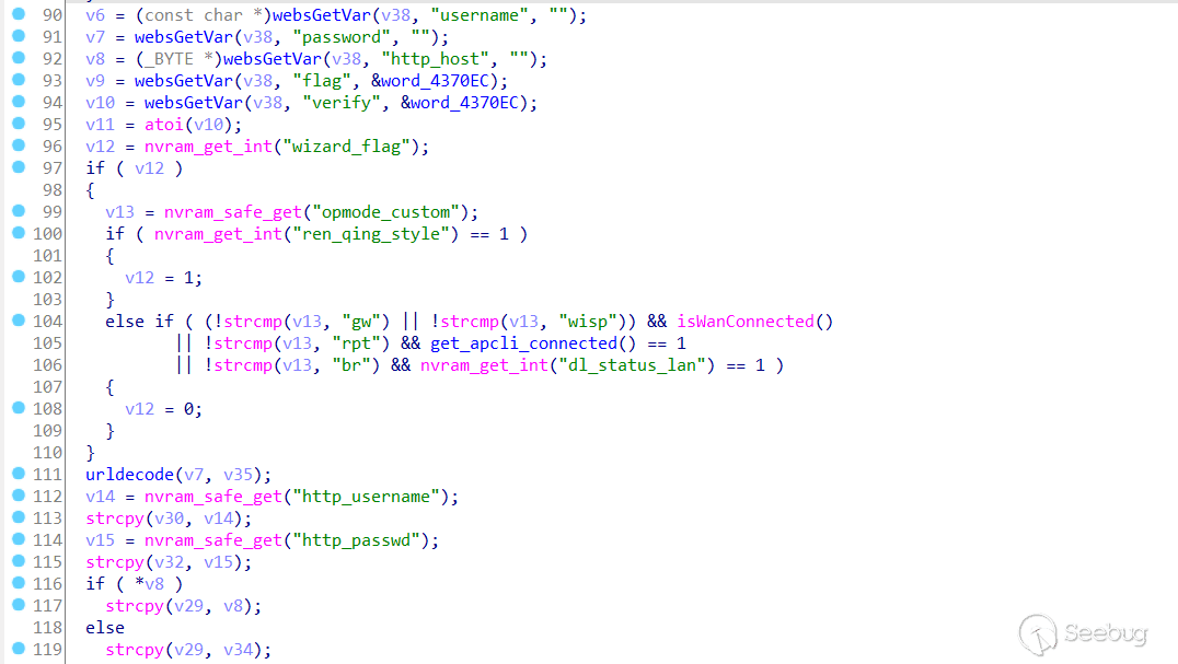 if ( !strcmp(v35, v32) ) // passwd http_passwd