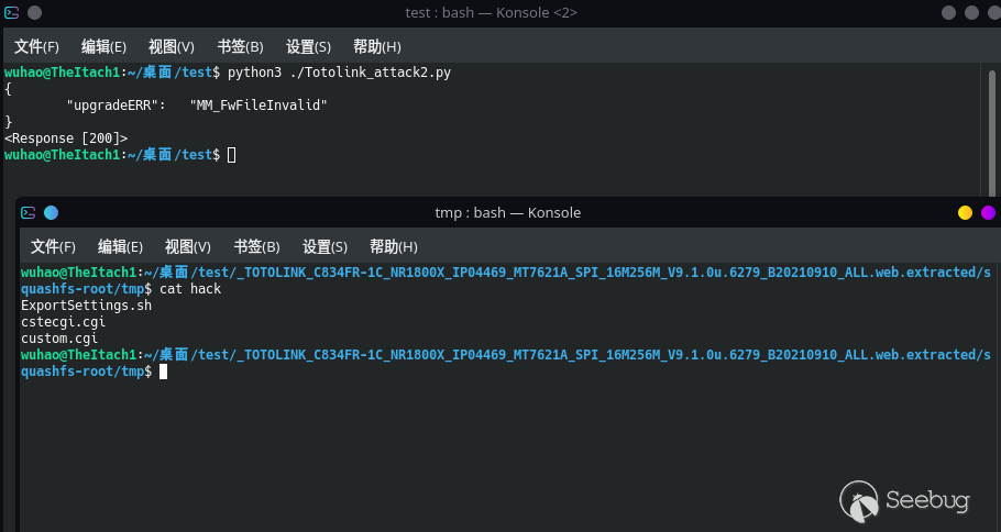 然后則是將提取出的固件的文件系統上傳到qemu虛擬機中,在Ubuntu主機中執行命令。