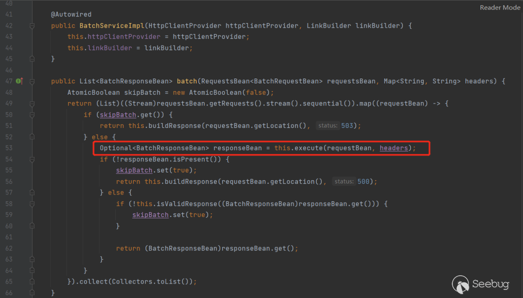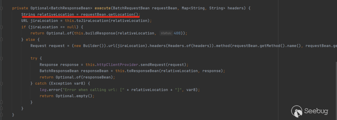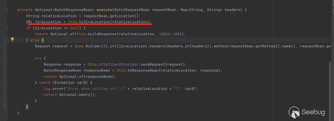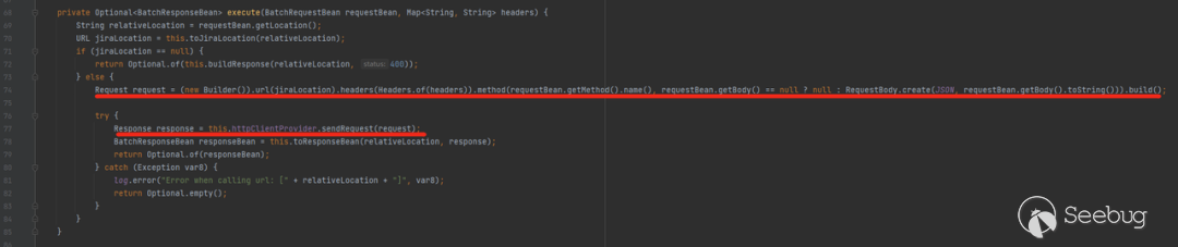 在如圖所示代碼,實際負責發送HTTP請求。其中batchService接口的實現類BatchServiceImpl位于com.atlassian.jira.plugin.mobile.service.impl.BatchServiceImpl.class