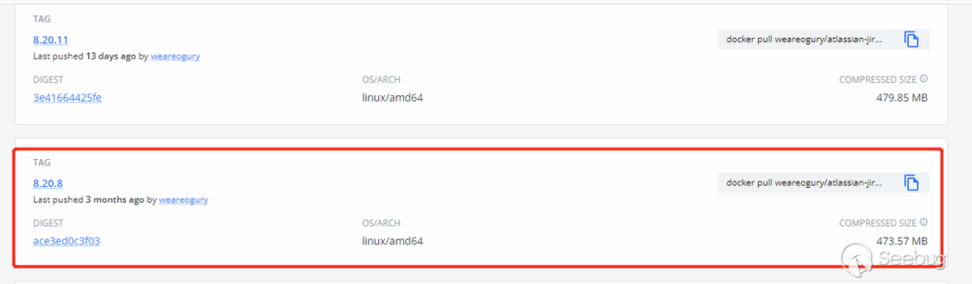 使用docker搭建,在docker倉庫(https://hub.docker.com/r/weareogury/atlassian-jira-software/tags)中可找到漏洞版本的Jira Software Server鏡像。